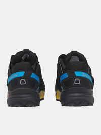 Y/PROJECT x SALOMON shoes in black, textile upper, multi-tone, low-top, collaboration branding, bungee cord lace-up fastening, branded tongue patch, round toe, Contragrip sole. Upper: 60% Polyurethane 40% Polyester Mesh: 100% Polyester Lacing: 100% Polyester Inner: 100% Polyester US Men's Sizing