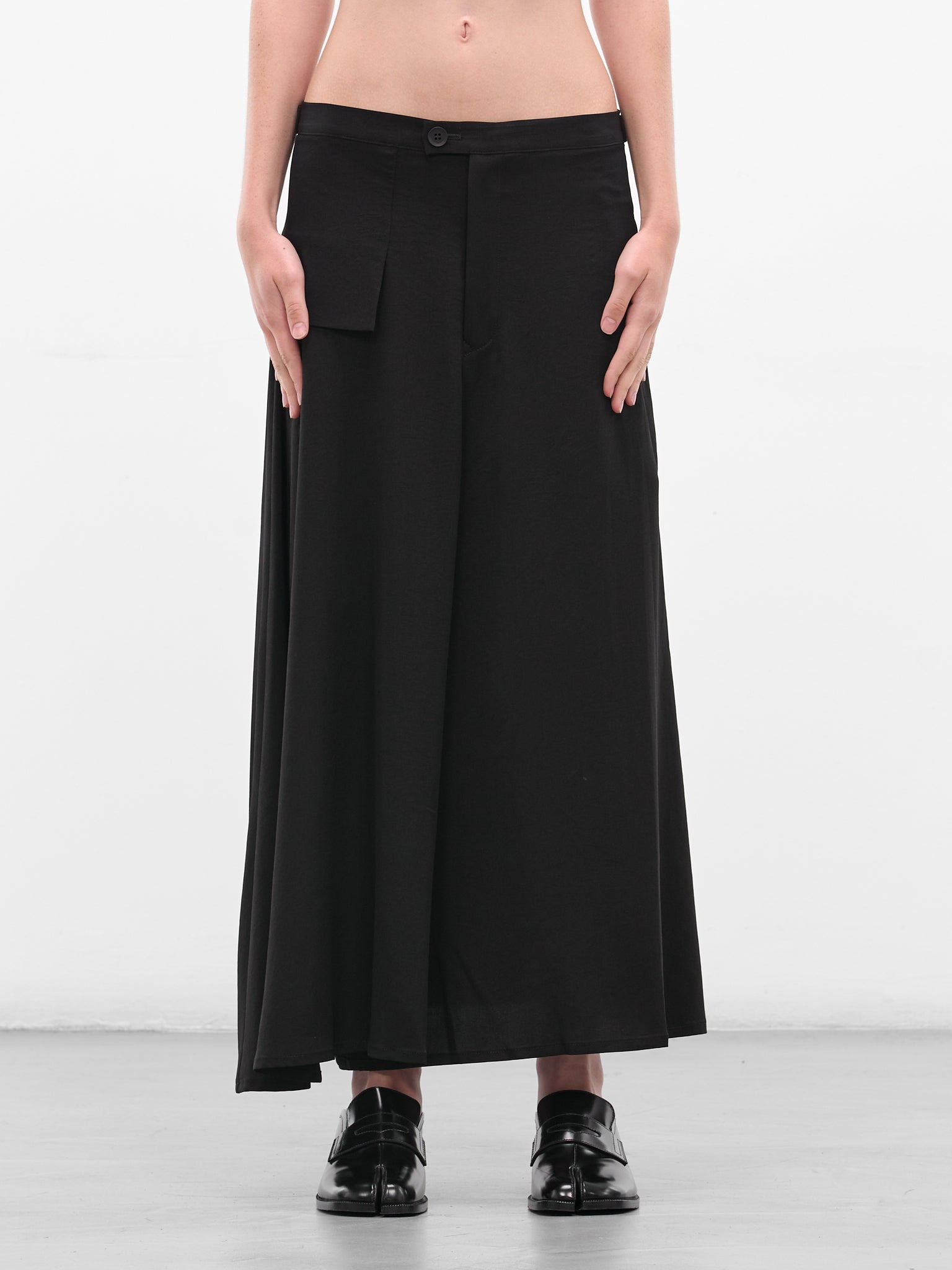 Black Flared Skirt Drape Trousers