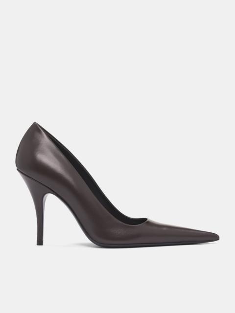 Brown Leather Sharp Pumps