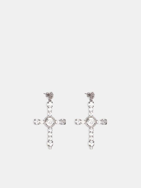 Silver Crystal Cross Earrings