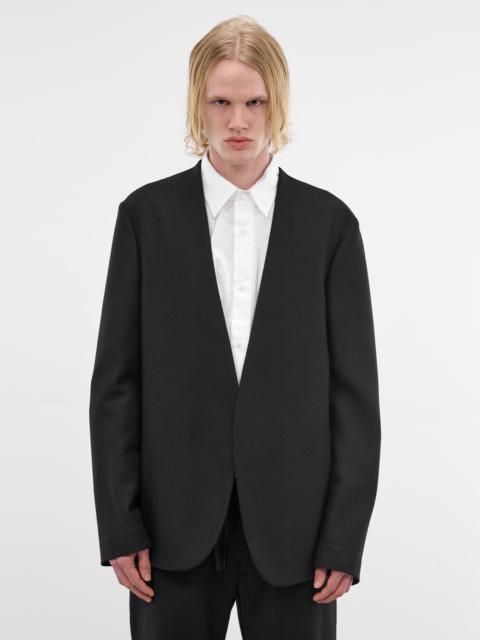Black Wool Collarless Blazer