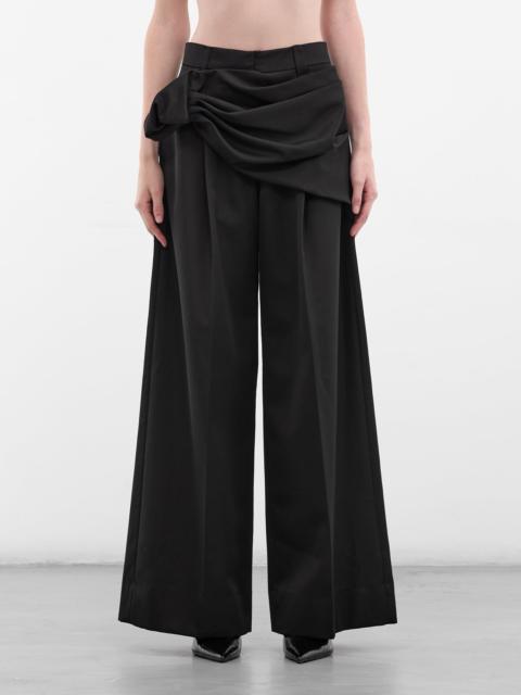 Black Draped Sash Wide Trousers
