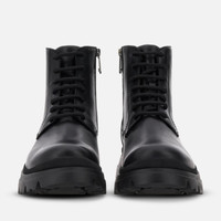 - Men's Hogan H692 Ankle Boots - Made in Italy - Leather upper - Greased finishing - Zip on the inside - Leather lining - Memory foam insole - Rubber lugged outsole - Total height 2.4 ins - Maintenance and care cards included - Fabric dustbag included Sculptural and chunky: a hiking-boot sole construction juxtaposed with a sophisticated shoe upper defines this new urban hybrid style. Crafted in greased leather, the Hogan H692 ankle boot features laces on the front, zip on the inside and a comfortable memory foam insole.