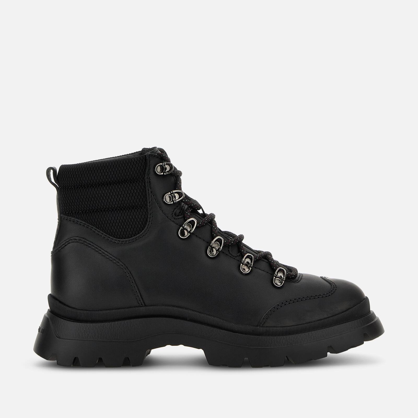 - Men's Hogan H692 Ankle Boots - Made in Italy - Smooth nubuck upper - Rubber-effect leather inserts - Mesh detailing - Leather lining - Memory foam insole - Rubber lugged outsole - Total height 2.4 ins - Maintenance and care cards included - Fabric dustbag included Sculptural and chunky: an urban model with a hiking look. Crafted in smooth nubuck with rubber-effect inserts, the Hogan H692 ankle boot features a hook-eyelet lacing and padded collar. Bold yet refined, and complemented by a comfortable memory foam insole.