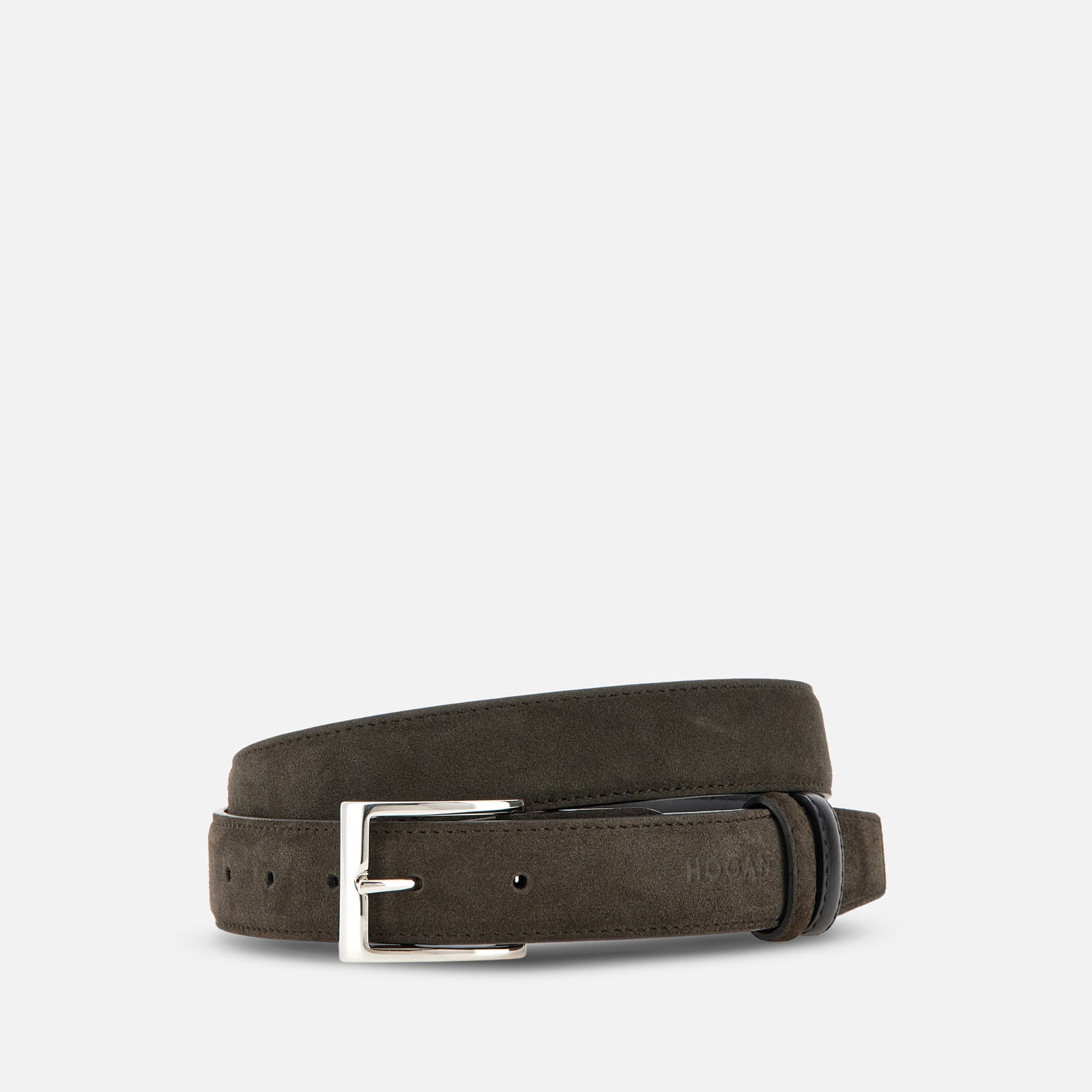 - Men's belt in suede - Made in Italy - Item crafted in suede - Smooth leather loop - Metal tongue buckle - Stamped Hogan logo - Width 1.2 ins - Maintenance and care cards included - Fabric dustbag included Belt in suede with tongue buckle. A versatile and timeless accessory, with stamped Hogan logo.