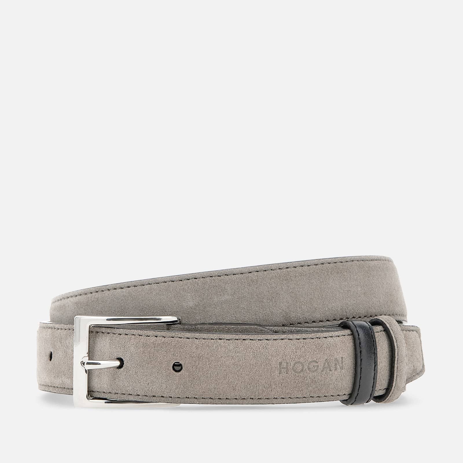 - Men's belt in suede - Item crafted in suede - Smooth leather loop - Metal tongue buckle - Stamped Hogan logo - Width 1.2 ins - Maintenance and care cards included - Fabric dustbag included Belt in suede with tongue buckle. A versatile and timeless accessory, with stamped Hogan logo. MOD. KFMC00N1101QA3003X