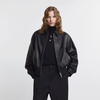 - Bomber jacket in nappa leather - Fitting: regular - Item composition: 100% ovine nappa leather, lining 100% polyester, sleeve lining 100% polyester - Maintenance and care cards included Bomber jacket crafted in soft nappa leather, with welt pockets and elastic bottom hem. Characterized by raglan sleeves with angled stitching, it comes with a zip fastening, cuffs with strap and covered snap.
