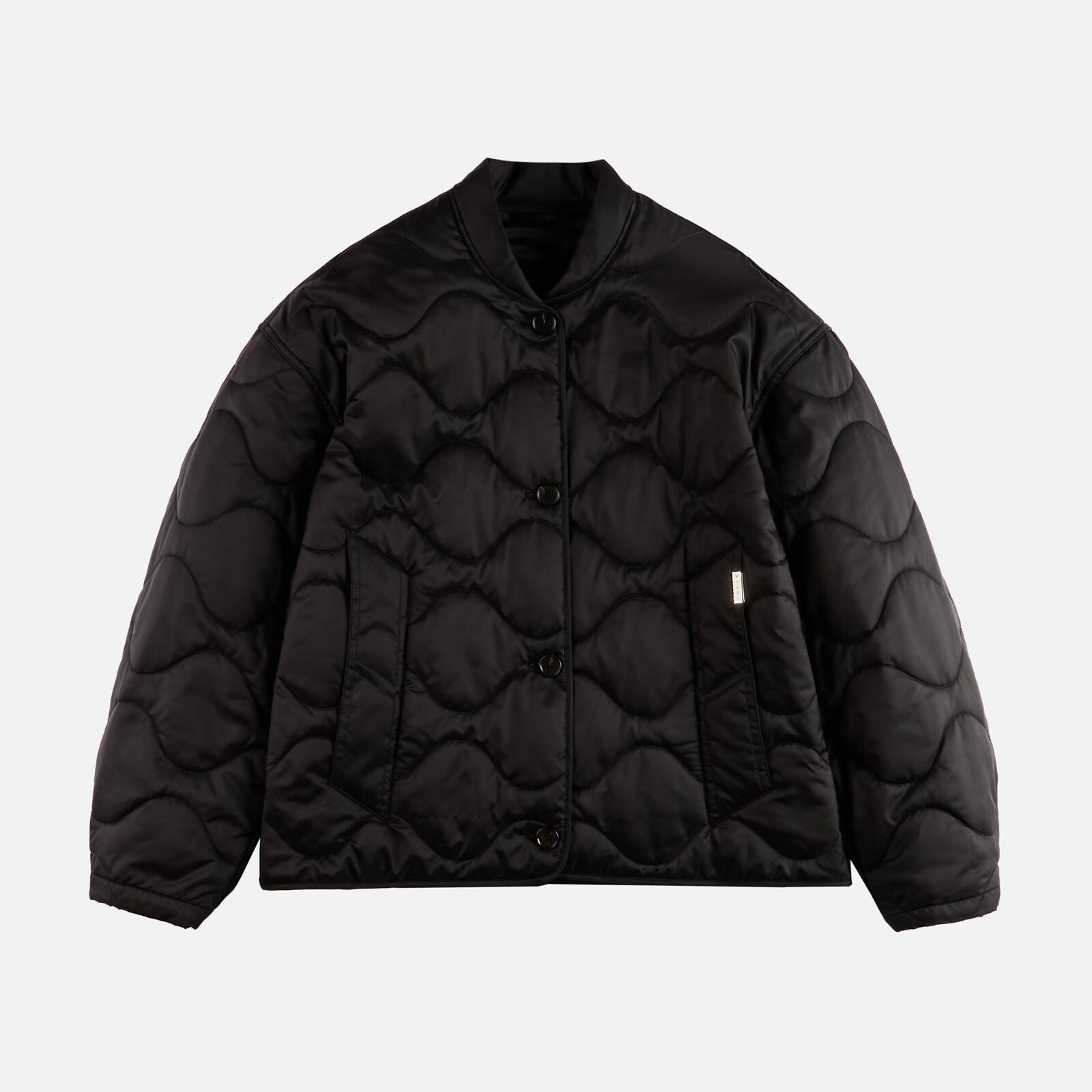 - Women's quilted bomber jacket - Fitting: comfort - Item composition: 100% polyamide, lining 51% polyester, 49% elastomultiester, padding 100% polyester - Maintenance and care cards included Bomber jacket quilted in ripstop nylon, with lightweight padding and structured sleeves. Featuring elastic cuffs and a button fastening, it comes with two welt pockets, one with branded metal tag. The back tag with H stitching complements the garment.