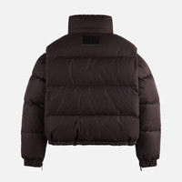- Women's Hogan Down Jacket - Fitting: over - Item composition: 100% polyester, lining 100% polyester, leather detailing, padding 90% down, 10% feathers, class I feathers - Maintenance and care cards included Over down jacket in peach hand effect water-repellent microfiber, fastened with concealed zip and snaps. Featuring detachable sleeves, with zip on the cuffs, it comes with a concealed hood and leather tag on the back with brand's address. A warm and comfortable urban garment, with versatile use.