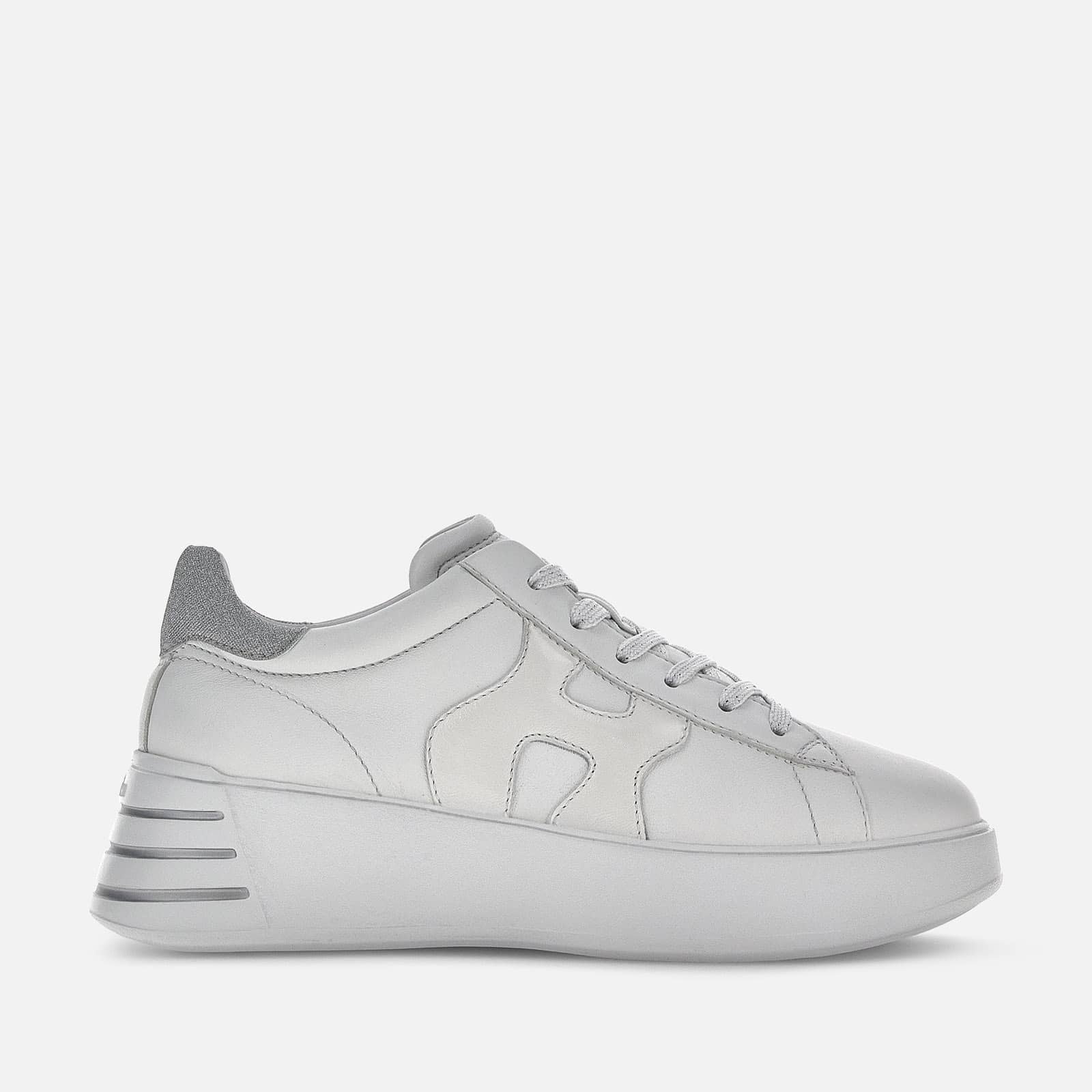 - Women's Hogan Rebel Sneakers - Made in Italy - Nappa leather upper - Soft patent leather side H - Shiny fabric detailing - Memory foam insole 0.2 ins - Hand-painted rubber outsole - Total height 2 ins - Maintenance and care cards included - Fabric dustbag included Reinterpreted in design and volumes, the iconic Hogan Rebel project features an extra-light outsole with grooves on the back. With their soft and refined lines, these women's sneakers are crafted in nappa leather, with a wavy side H. The memory foam insole guarantees comfortable cushioning for this cool and versatile style. MOD. HXW5640DN61QYQ0351
