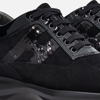 - Suede upper - Made in Italy - Patent leather detailing - Micro-sequined Hogan monogram on the side - Rubber outsole - Total height 2.2 ins - Exposed stitching - Care and maintenance instructions included - Branded dustbag included Interactive in suede with patent leather detailing, exposed stitching and micro-sequined Hogan monogram on the side. Easy-chic mood. SIZE and FIT: wide fit, we advise you to opt for half a size smaller. MOD. HXW00N0564025Q9999