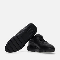 - Men's Hogan Interactive³ sneakers - Made in Albania - Leather upper - Side H with stitching - Memory foam insole - Rubber outsole - Maintenance and care cards included - Fabric dustbag included Stylish and technological evolution of an icon from the world of Hogan, Interactive³ is characterized by avant-garde style. Crafted in leather with a side H, they feature an ergonomic outsole which aids walking and adds 2 ins to your height. A model with attitude, created for the enterprising man. SIZE and FIT: wide fit, we advise you to opt for half a size smaller. MOD. HXM3710CP50LE9B999