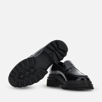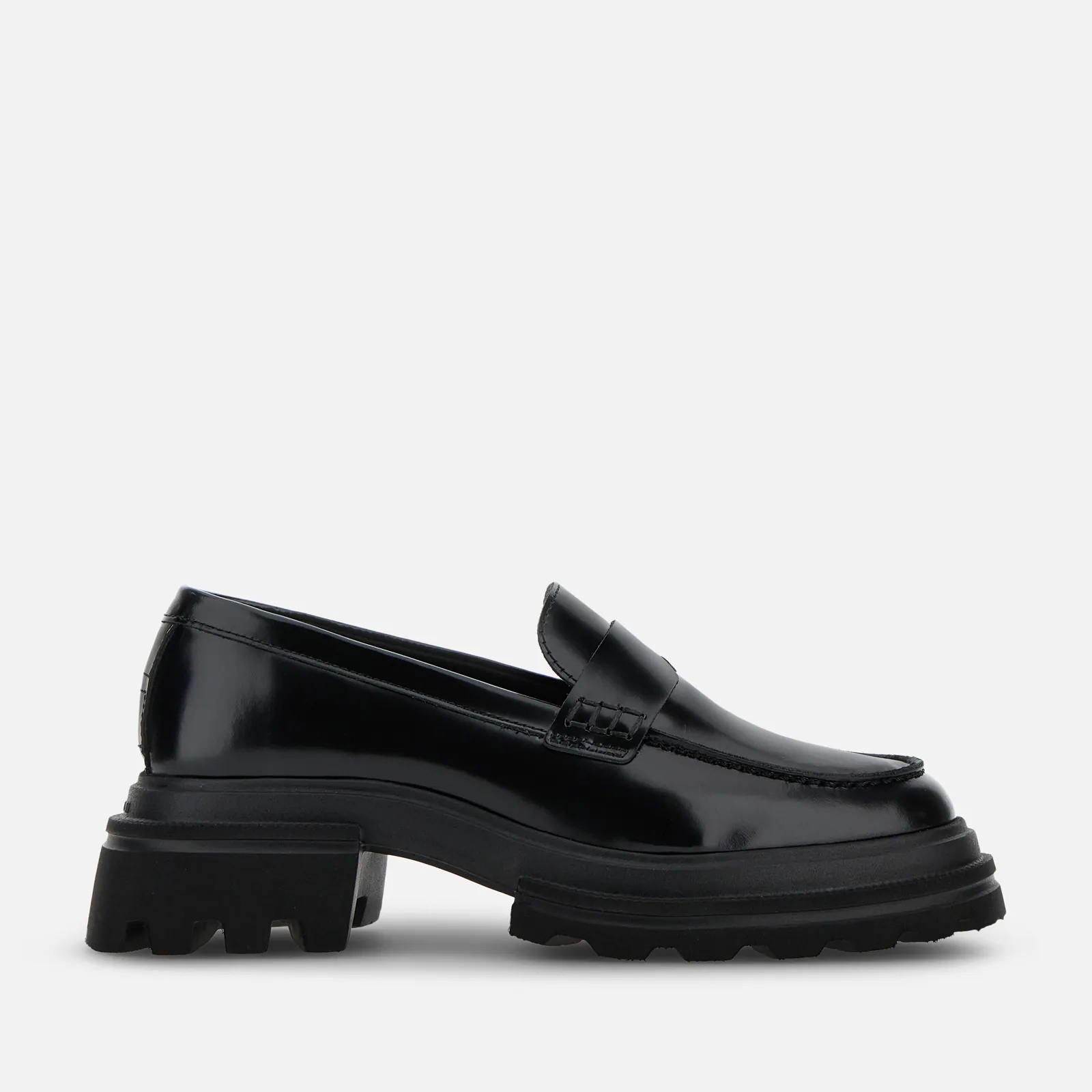 - Women's Hogan 10-Storey Loafers - Smooth leather upper - Soft insole 0.2 ins - EVA outsole - Total height 2.2 ins - Maintenance and care cards included - Fabric dustbag included Epitomizing modern urban aesthetics and attitudes, these saddle loafers come with a workwear-inspired, and a new extralight signature split-sole. Crafted in shiny leather, they feature an upper with essential line, and front strap. Complemented by a soft insole, they are a versatile model for your everyday look.