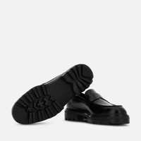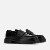- Men's Hogan H673 Loafers - Made in Italy - Abrasivato leather upper - Soft insole 0.2 ins - EVA outsole - Total height 2 ins - Maintenance and care cards included - Fabric dustbag included Epitomizing modern urban aesthetics and attitudes, these saddle loafers come with a workwear-inspired, and a new extralight signature split-sole. Crafted in abrasivato leather, they feature an upper with essential line, and penny bar on the front. Complemented by a soft insole, they are a versatile model for your everyday look.