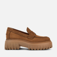 - Women's Hogan H700 Loafers - Made in Italy - Nubuck upper - Penny bar with handmade stitching - Metal H charm - Leather lining - Memory foam insole 0.3 ins - Rubber outsole - Total height 3 ins - Maintenance and care cards included - Fabric dustbag included The Hogan H700 is a statement chunky design construction, fusing oversize H branding into the iconic H-Stripes sole. This preppy loafer, with penny bar and H charm, is crafted in silky nubuck. A juxtaposition of rugged performance and urban chic, with a comfortable memory foam insole.
