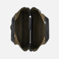 - Women's Hogan Shopping Bag - Item crafted in hammered leather - Embossed Hogan logo - Coated metal H-Fob charm - Zipped central pocket - Dimensions: 13.4 x 8.9 x 5.9 ins - Double handles - Adjustable and removable shoulder strap - Maintenance and care cards included - Fabric dustbag included Crafted in hammered leather, this unlined mini bag features two portable handles and a removable shoulder strap. The wide interior is divided into two compartments, separated by a flat zipped pocket. A chic and functional statement, it's completed with a Hogan logo in relief and the metal H-Fob pendant.