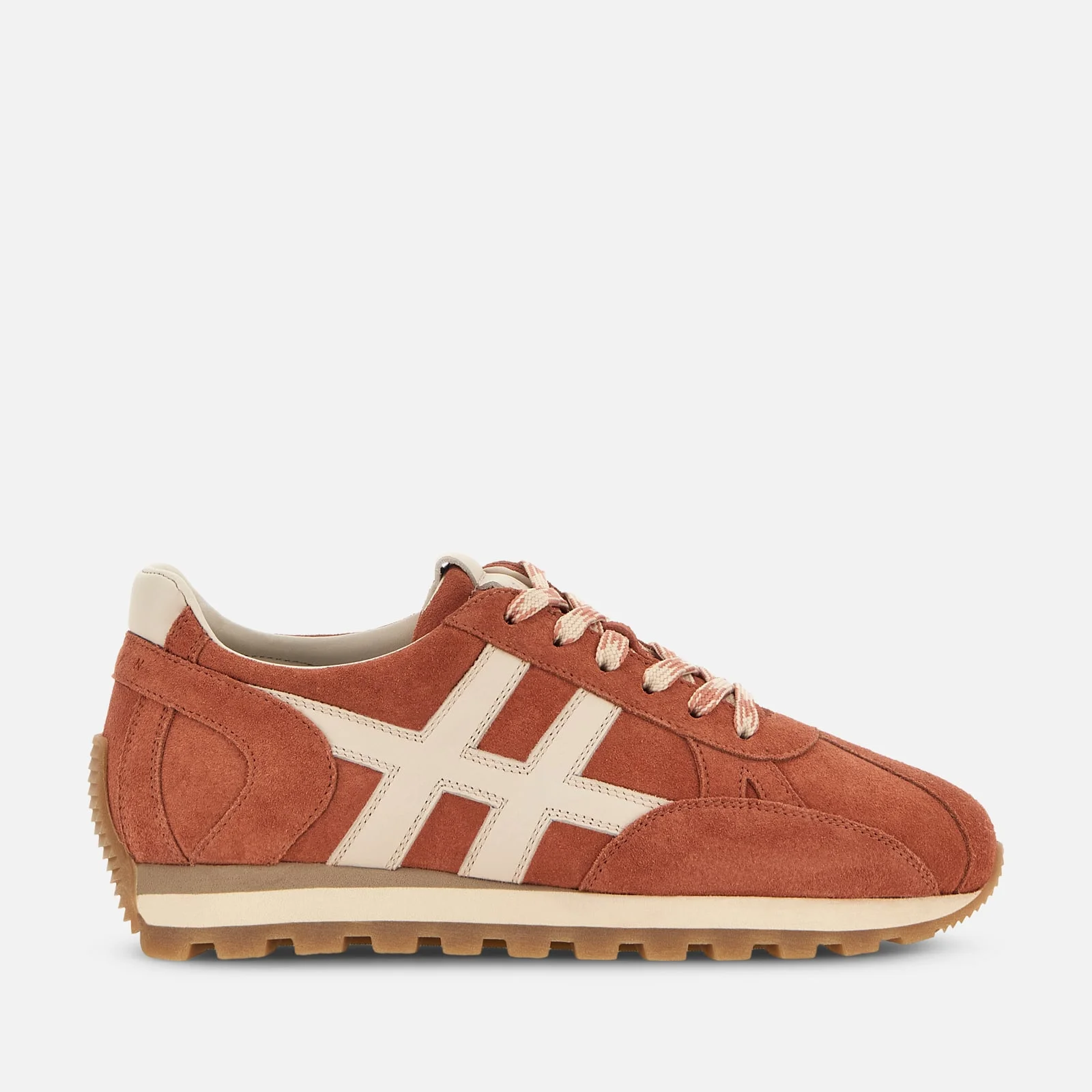 - Women's Hogan 86er Sneakers - Made in Italy - Suede upper - Smooth leather H applied on the side - Memory foam insole 0.2 ins - EVA outsole - Total height 1.6 ins - Maintenance and care cards included - Fabric dustbag included - Additional laces included A nod to the popular sneakers that helped define the year of the brand’s birth, the Hogan 86er come here with the iconic H applique detailing. The extralight outsole features a cleated tread that also designs the heel reinforcement. Complemented by a memory foam insole, these sneakers in suede are perfect for an easy-going and relaxed outfit.