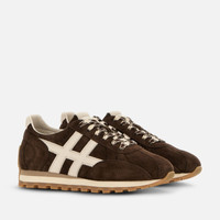 - Women's Hogan 86er Sneakers - Made in Italy - Suede upper - Smooth leather H applied on the side - Memory foam insole 0.2 ins - EVA outsole - Total height 1.6 ins - Maintenance and care cards included - Fabric dustbag included - Additional laces included A nod to the popular sneakers that helped define the year of the brand’s birth, the Hogan 86er come here with the iconic H applique detailing. The extralight outsole features a cleated tread that also designs the heel reinforcement. Complemented by a memory foam insole, these sneakers in suede are perfect for an easy-going and relaxed outfit.
