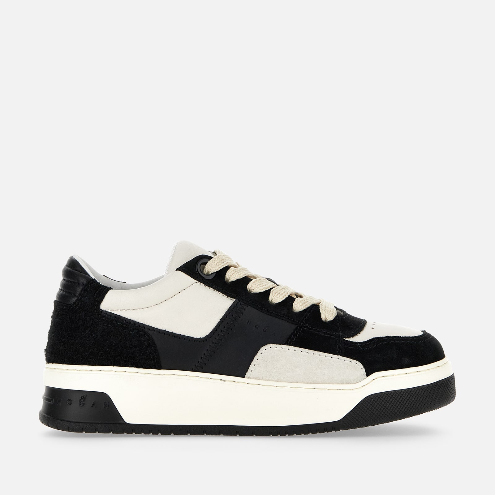 - Women's Hogan Chamallow Sneakers - Made in Italy - Suede upper - Smooth leather inserts - Nappa leather detailing - Hogan logo stamped on the side - Memory foam insole 0.2 ins - Rubber outsole - Total height 1.9 ins - Maintenance and care cards included - Fabric dustbag included - Additional laces included Street codes and Hogan DNA meet in this skate-inspired model. Oversized volumes and puffy padding are expressed in an extremely cool, relaxed style. The extralight outsole, finished with different textures, comes with the Hogan logo embossed on the back. Crafted here in suede and smooth leather, the Hogan Chamallow sneakers are complemented by a soft memory foam insole, for an extra comfort.