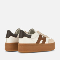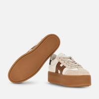 - Women's Hogan Cool Sneakers - Made in Italy - Nappa leather upper - Suede inserts - Smooth leather side H and detailing - Memory foam insole 0.3 ins - Rubber platform outsole - Total height 2.2 ins - Maintenance and care cards included - Fabric dustbag included - Additional laces included This Hogan Cool is characterized by its combination of distinctive upper and brand-new signature lightweight maxi sole. Showcasing both sophistication and elevation, this sneaker is crafted in nappa leather and suede. H branding on the side in smooth leather, and complemented by a comfortable memory foam insole.