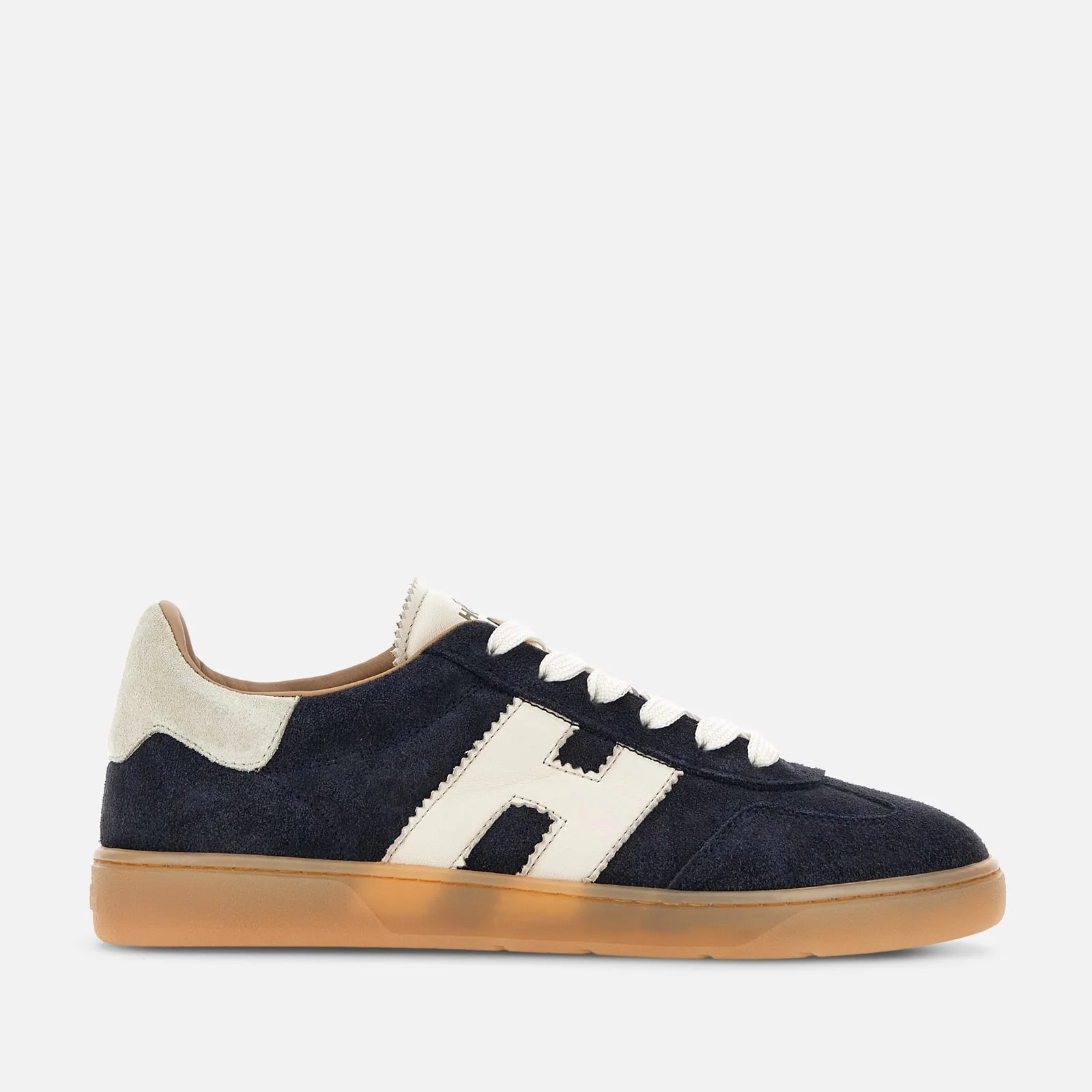 - Women's Hogan Cool Sneakers - Suede upper - Nappa leather side H and detailing - Memory foam insole 0.3 ins - Rubber (TPU) cupsole - Total height 1.3 ins - Maintenance and care cards included - Fabric dustbag included Perfect mix of retro elements and contemporary lines, the Hogan Cool sneakers are characterized by a sober and refined look. Featuring a padded tongue, the upper here is crafted in suede, with a nappa leather serrated side H. A reinterpretation of the historic H327 style, the amber-colored outsole recalls the slanted monogram on the tread. The memory foam insole guarantees a cushioned fit.