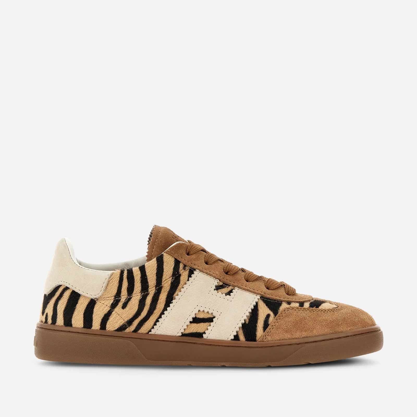 - Women's Hogan Cool Sneakers - Suede upper - Pony effect leather inserts with animal print - Nubuck side H and nubuck detailing - Memory foam insole 0.3 ins - Rubber (TPU) cupsole - Total height 1.3 ins - Maintenance and care cards included - Fabric dustbag included - Additional laces included Perfect mix of retro elements and contemporary lines, the Hogan Cool sneakers are characterized by a sober and refined look. Featuring a padded tongue, the upper here is crafted in suede and pony effect leather, with a serrated side H. The outsole recalls the slanted monogram on the tread, while the memory foam insole guarantees a cushioned fit.