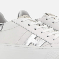 - Women's Hogan Crosswind Sneakers - Made in Italy - Smooth leather upper - Nappa leather inserts - Rubberized and metallic leather detailing - Side H - Memory foam insole 0.3 ins - Rubber outsole - Total height 2.2 ins - Maintenance and care cards included - Fabric dustbag included - Additional laces included A skater-inspired women's shoe construction, with chunky outsole juxtaposed with a chic and relaxed upper. Characterized by an H-branding positioned at the front of the upper, these sneakers are crafted in soft leather. Refined distinctive feature, the micro H monogram defines the texture of the rubber outsole and tread. The memory foam insole adds additional comfort and cushioning.