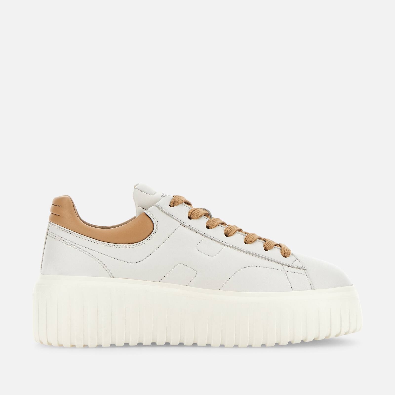 - Women's Hogan H-Stripes Sneakers - Made in Italy - Nappa leather upper - Side H - Memory foam insole 0.3 ins - EVA outsole - Total height 2.3 ins - Maintenance and care cards included - Fabric dustbag included - Additional laces included A new style with sporty and versatile lines, the H-Stripes features an extralight outsole with vertical stripes and waves on the tread. The upper, with a compact and balanced design, is characterized by an H that extends across the side. The upper trim, with stitching on the back patch, comes with a soft padding. These sneakers are crafted in nappa leather, with a memory foam insole that guarantees comfortable cushioning.