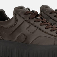 - Men's Hogan H-Stripes Sneakers - Made in Italy - Smooth leather upper - Side H - Memory foam insole 0.3 ins - EVA outsole - Total height 1.9 ins - Maintenance and care cards included - Fabric dustbag included - Additional laces included Style with sporty and versatile lines, the H-Stripes sneakers feature an extralight outsole with vertical stripes. The upper, with a compact and balanced design, is characterized by the H that extends across the side. The upper trim, featuring stitching on the back patch, comes with a soft padding. This version is crafted in smooth leather with a memory foam insole that guarantees comfortable cushioning.
