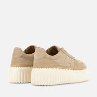- Women's Hogan H-Stripes Sneakers - Made in Italy - Suede upper - Side H - Raffia welt - Memory foam insole 0.3 ins - EVA outsole - Total height 2.3 ins - Maintenance and care cards included - Fabric dustbag included - Additional laces included New style with sporty and versatile lines, the H-Stripes sneakers feature an extralight outsole with vertical stripes. The upper, with a compact and balanced design, is characterized by the H that extends across the side. The upper trim comes with a soft padding. This full summer version is crafted in suede, with a raffia welt and memory foam insole that guarantees comfortable cushioning.