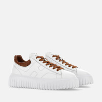 - Men's Hogan H-Stripes Sneakers - Made in Italy - Nappa leather upper - Side H - Memory foam insole - Rubber outsole - Maintenance and care cards included - Fabric dustbag included - Additional laces included A new style with sporty and versatile lines, the H-Stripes features an extralight outsole with vertical stripes and waves on the tread. The upper, with a compact and balanced design, is characterized by an H that extends across the side. The upper trim, with stitching on the back patch, comes with a soft padding. These sneakers are crafted in nappa leather, with a memory foam insole that guarantees comfortable cushioning. MOD. HXM6450FC60LE90446