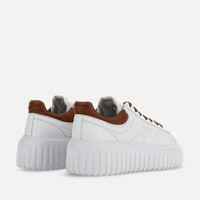 - Women's Hogan H-Stripes Sneakers - Made in Italy - Nappa leather upper - Side H - Memory foam insole 0.3 ins - EVA outsole - Total height 2.3 ins - Maintenance and care cards included - Fabric dustbag included - Additional laces included A new style with sporty and versatile lines, the H-Stripes features an extralight outsole with vertical stripes and waves on the tread. The upper, with a compact and balanced design, is characterized by an H that extends across the side. The upper trim, with stitching on the back patch, comes with a soft padding. These sneakers are crafted in nappa leather, with a memory foam insole that guarantees comfortable cushioning. MOD. HXW6450FC60LE90446