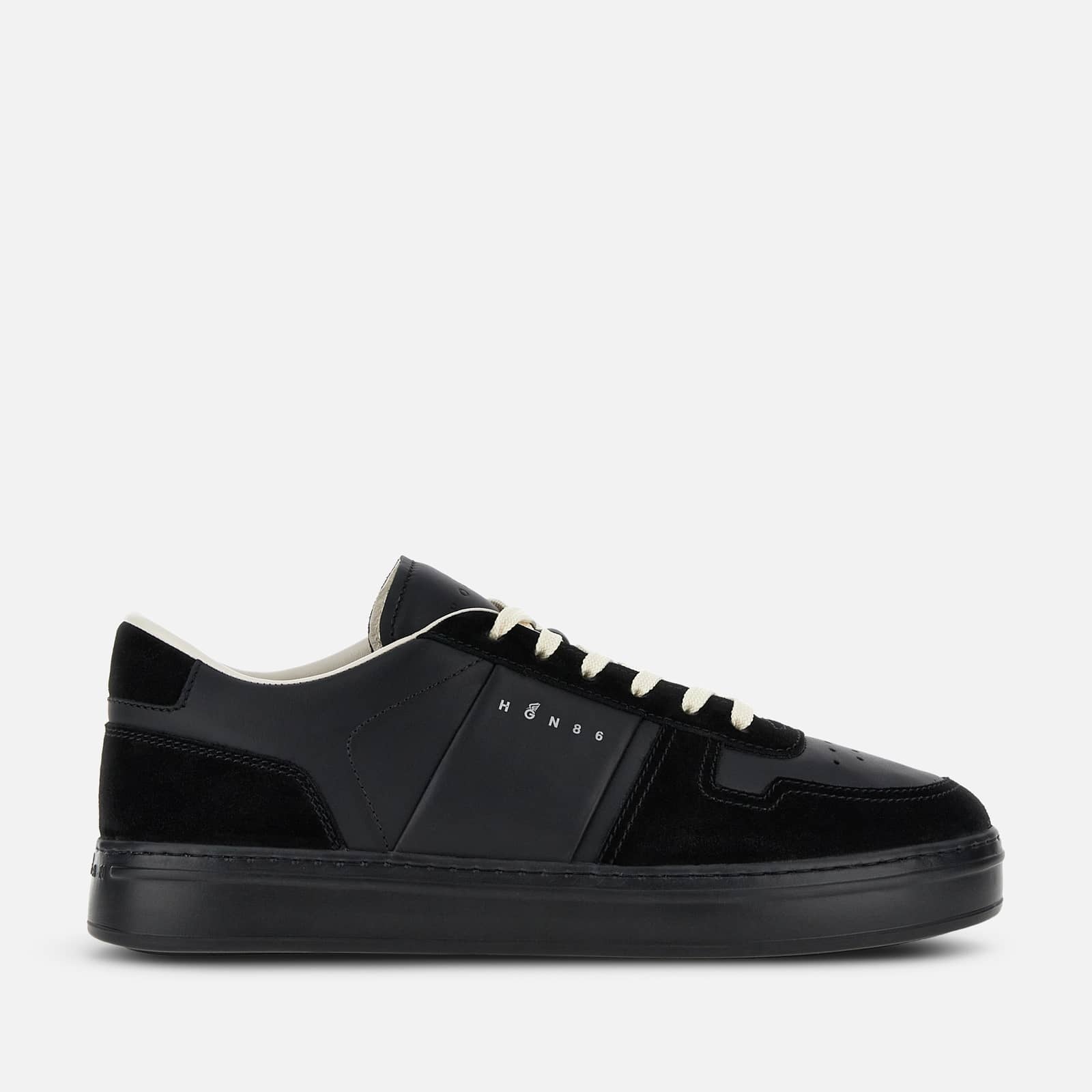 - Men's Hogan H-TV Sneakers - Suede upper - Smooth leather inserts - Nubuck and nappa leather detailing - HGN86 logo stamped on the side - Memory foam insole 0.3 ins - Rubber outsole - Total height 1.4 ins - Maintenance and care cards included - Fabric dustbag included - Additional laces included Clean lines and crisp definition, a nostalgic throwback to 1980s tech gear is the inspiration for these Hogan H-TV sneakers. Characterized by a lightweight outsole with a minimal style, they feature an upper recalling the lines of the basketball world. Enhanced by the HGN86 logo printed on the side, they come here in smooth leather and suede. The memory foam insole guarantees a cushioned fit.