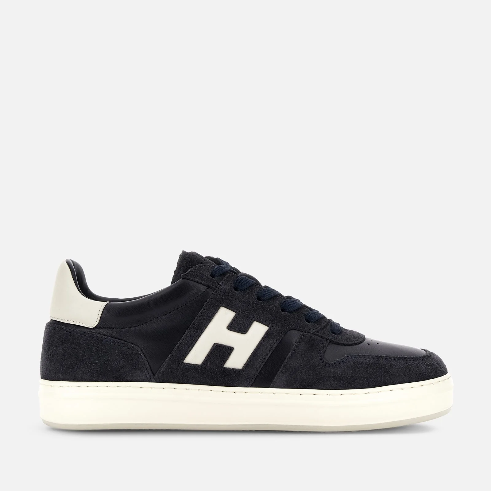 - Men's Hogan H-TV Sneakers - Made in Italy - Suede upper - Nappa leather inserts - Engraved side H - Smooth leather detailing - Memory foam insole 0.3 ins - Rubber outsole - Total height 1.4 ins - Maintenance and care cards included - Fabric dustbag included - Additional laces included Clean lines and crisp definition, a nostalgic throwback to 1980s tech gear is the inspiration for these Hogan H-TV sneakers. Characterized by a lightweight outsole with a minimal style, they feature an upper recalling the lines of the basketball world. Enhanced by the engraved side H, they come here in suede and soft nappa leather. The memory foam insole guarantees a cushioned fit.