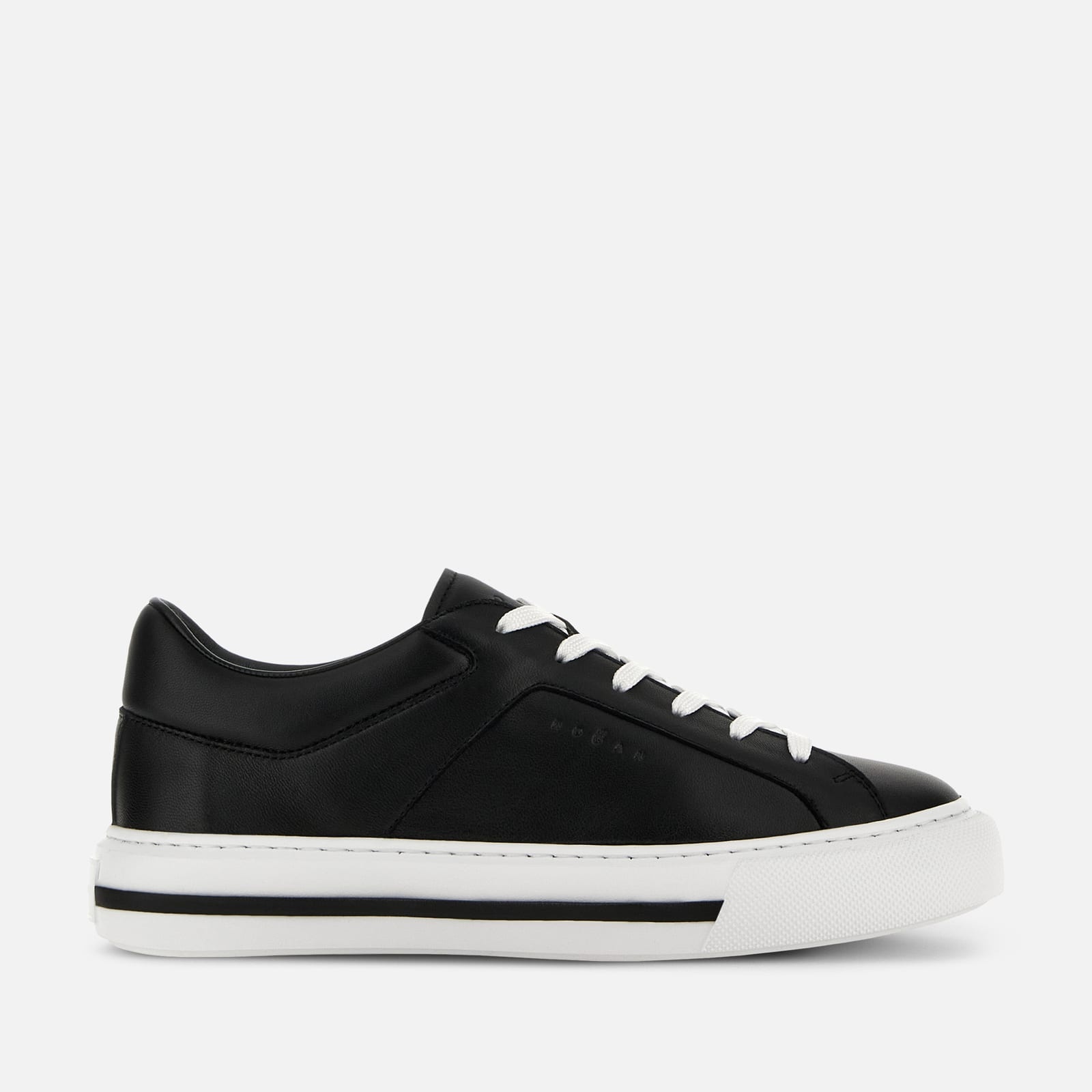- Men's Hogan H691 Sneakers - Nappa leather upper - Hogan logo stamped on the side and tongue - Memory foam insole - Rubber outsole - Total height 1.5 ins - Maintenance and care cards included - Fabric dustbag included - Additional laces included A men’s urban shoe inspired by 90s skater sneakers. The Hogan H691 is crafted in nappa leather, with Hogan logo stamped on the side. The memory foam insole complements this versatile and refined style.