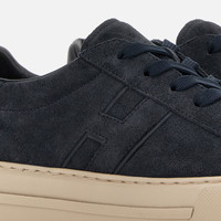 - Men's Hogan H691 Sneakers - Suede upper - Smooth leather detailing - Side H - Hogan logo stamped on the tongue - Memory foam insole - Rubber outsole - Total height 1.5 ins - Maintenance and care cards included - Fabric dustbag included - Additional laces included A men’s urban shoe inspired by 90s skater sneakers. The Hogan H691 is crafted in suede, with a single piece of material wrapped over H branding to create a drop-shadow effect. The memory foam insole complements this versatile and refined style.