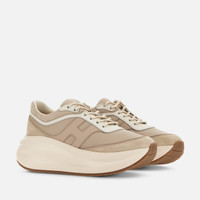 - Women's Hogan H696 Sneakers - Made in Italy - Nappa leather upper - Suede inserts - Smooth leather side H and detailing - Hogan logo stamped on the tongue - Memory foam insole 0.2 ins - Extralight rubber outsole - Total height 2.6 ins - Maintenance and care cards included - Fabric dustbag included - Additional laces included A new sculptural construction and a voluptuous chunky sole that provides comfortable elevation. The Hogan H696 sneaker features a dynamic and sophisticated design. Crafted in nappa leather and suede with luxury manufacturing, it comes with a softly rounded upper, maxi H on the side and a memory foam insole.