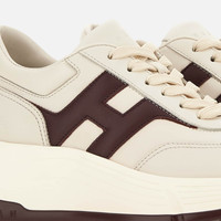 - Women's Hogan Hi-Fi Sneakers - Made in Italy - Limited Edition - Nappa leather upper - Smooth leather side H - Memory foam insole 0.3 ins - Rubber outsole - Total height 2.6 ins - Maintenance and care cards included - Fabric dustbag included - Additional laces included The Hogan Hi-Fi sneakers take a feminine twist on the studded Hyperlight outsole, with a raised platform for height and elegance. Recalling the 80s sporting iconography with their technical finishing and urban vocation, they feature a combination of soft and snappy lines. The upper comes here crafted in nappa leather, with the H on the side band. An energetic athleisure style, with a memory foam insole to guarantee extra comfort and a cushioned fit.