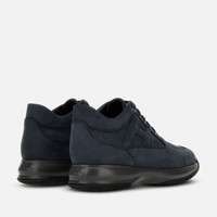 - Men's Hogan Interactive Sneakers - Made in Italy - Nubuck upper - Exposed stitching - Embossed side H - Removable insole rise 0.5 ins - Rubber outsole - Total height 2.2 ins - Maintenance and care cards included - Fabric dustbag included - Additional laces included Hogan Interactive is a real timeless icon, characterized by an elegant design and a lightweight outsole to guarantee a tall-and-slim look. Since 1997 it gets renewed with each collection still representing an absolute functional and contemporary luxury icon. These sneakers in nubuck feature a padded side H. Perfect for an urban casual look.