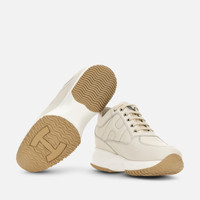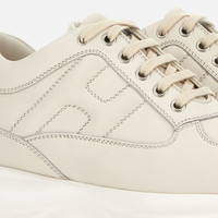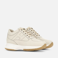 - Women's Hogan Interactive Sneakers - Made in Italy - Leather upper - Padded side H - Removable insole 0.5 ins - Rubber outsole - Total height 2.2 ins - Maintenance and care cards included - Fabric dustbag included - Additional laces included Hogan Interactive is a real timeless icon, characterized by an elegant design and a lightweight outsole to guarantee a tall-and-slim look. Since 1997 it gets renewed with each collection still representing an absolute functional and contemporary luxury icon. These sneakers in smooth leather come with a padded side H. Perfect for a casual sporty look.