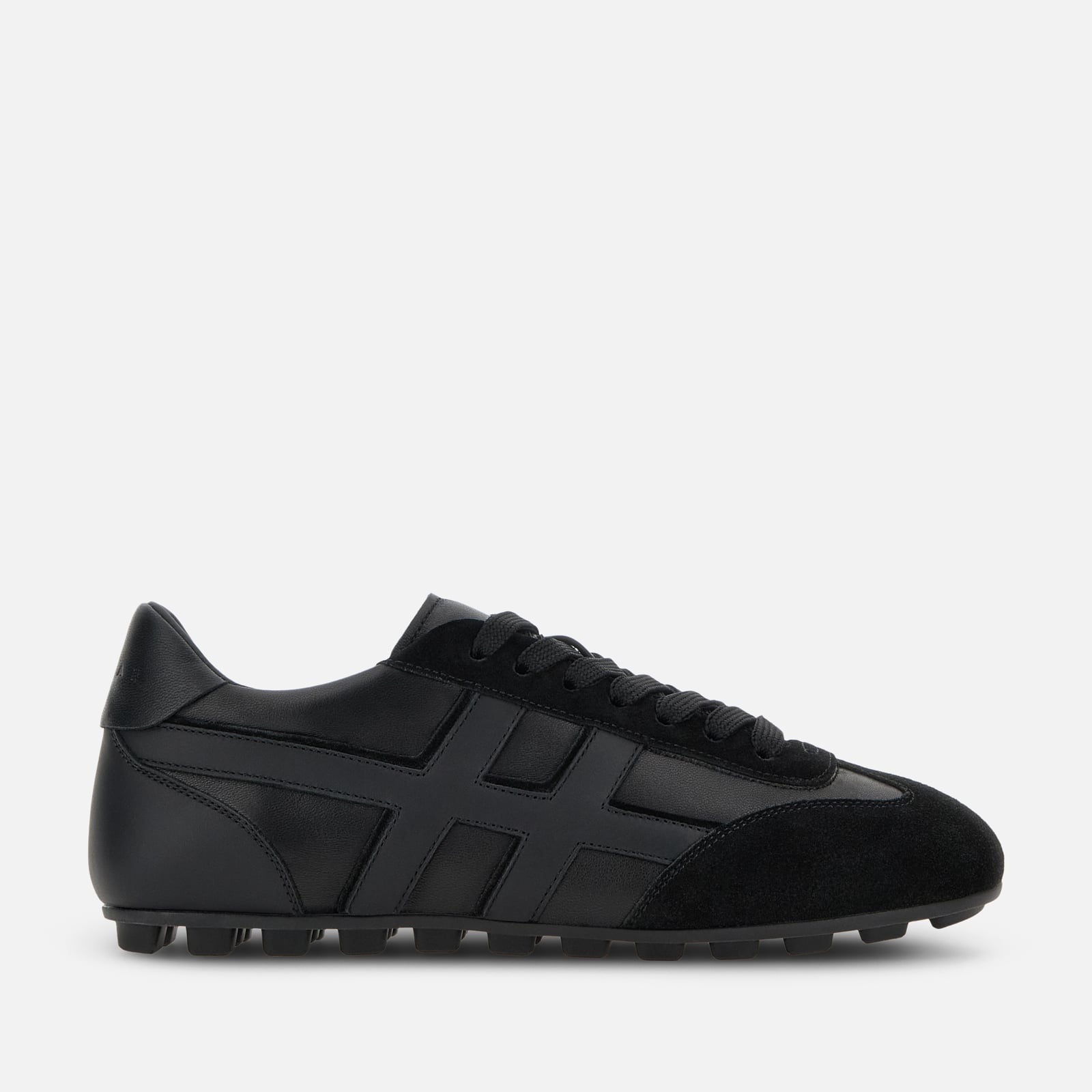 - Women's Hogan Olympia Sneakers - Made in Italy - Nappa leather upper - Suede inserts - Smooth leather detailing - Side H - Logo stamped on the tongue and heel - Leather lining - Memory foam insole 0.4 ins - Rubber outsole - Total height 1.3 ins - Maintenance and care cards included - Fabric dustbag included - Additional laces included A slim, super-feminine sneaker juxtaposed with a sporty, football-inspired tread: the Hogan Olympia sneaker is a contemporary reworking of the signature brand classic, in a play of contrasts. Crafted in nappa leather and suede with side H, it is characterized by retro-inspired stitching. An elegant new women’s shoe construction, complemented by a soft memory foam insole.