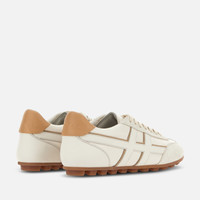 - Women's Hogan Olympia Sneakers - Made in Italy - Nappa leather upper - Suede inserts - Smooth leather side H - Logo stamped on the tongue and heel - Leather lining - Memory foam insole 0.4 ins - Rubber outsole - Total height 1.3 ins - Maintenance and care cards include - Fabric dustbag included - Additional laces included A slim, super-feminine sneaker juxtaposed with a sporty, football-inspired tread: the Hogan Olympia sneaker is a contemporary reworking of the signature brand classic, in a play of contrasts. Crafted in nappa leather and suede with side H, it is characterized by padded detailing and retro-inspired stitching. An elegant new women’s shoe construction, complemented by a soft memory foam insole.