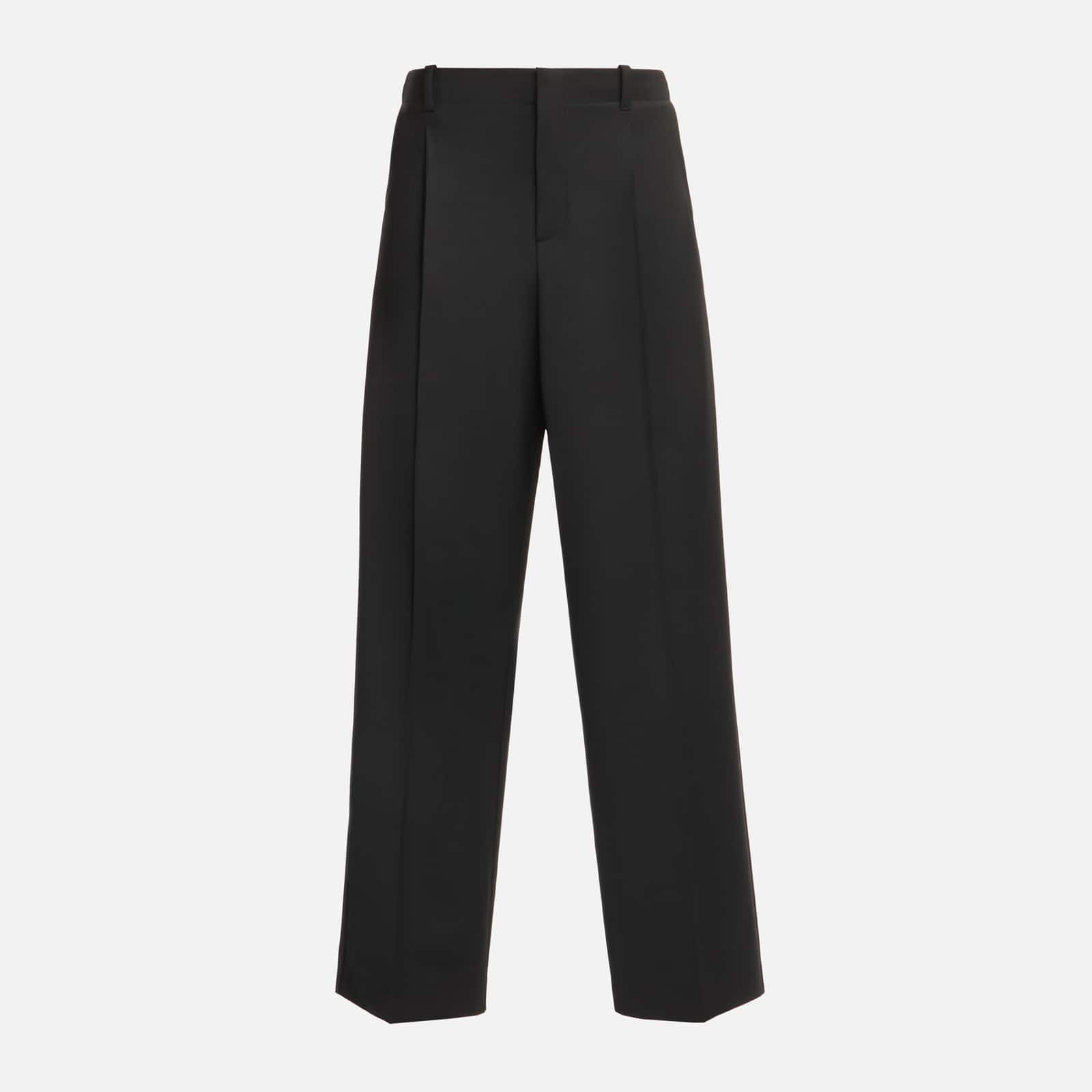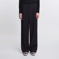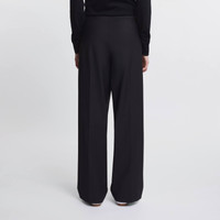 - Pants with pleats - Fitting: comfort - Item composition: 58% virgin wool, 38% polyester, 4% elastane - Maintenance and care cards included Wide-leg medium-waist pants with ironed crease, crafted in wool blend fabric. Fastened with zip, hook and concealed button, they come with slanted front pockets and welt back pockets. Perfect from the office to the weekend, they interpret a contemporary informal elegance.
