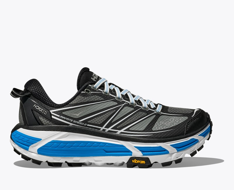The Mafate Speed 2 was built to offer support and cushioning in technical terrain over any distance. This update features a deep Active Foot frame for support, and a tuned Meta-Rocker to facilitate smooth transitions through the gait cycle. The outsole utilizes deep flex grooves to adapt to a variety of terrain, and the 5mm Vibram Mega-Grip tread grips even the trickiest surfaces. The Mafate Speed 2 is ready to perform mile after mile, however far your trail adventure takes you. Lightweight no-sew Speed Frame construction. External monomesh debris screen. Lightweight external TPU heel counter. Early stage Meta Rocker geometry. Lightweight cushioned CMEVA top midsole. Vibram Megagrip outsole. 4mm heel to toe offset. Strategic high-abrasion rubber zones.