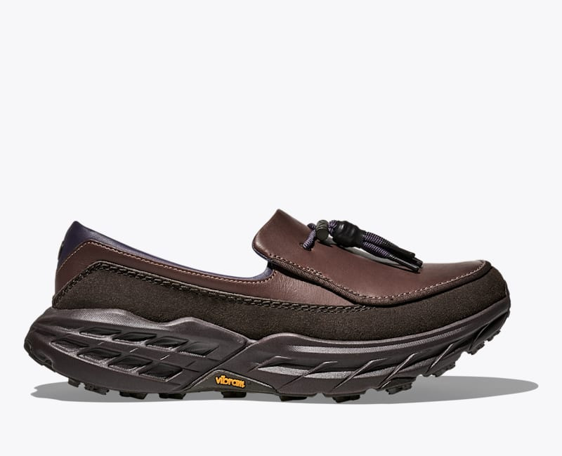 Blending luxury and performance, the Speed Loafer is a category-disrupting hybrid with 100% HOKA DNA. Iconic tooling from the Speedgoat 5 nods to our trail chops while a custom speed tassel and an opulent leather and suede upper add premium materializations for an upleveled look. Leather upper. Leather sockliner. Heel leather patch with bird logo. Custom speed tassel. Reflective piping. Suede mud guard. Speedgoat 5 midsole. Vibram Megagrip outsole.