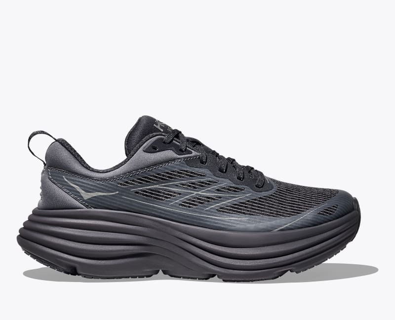 We dreamed of translating a high-tech road running shoe through a nature-inspired filter-and created the new Stealth/Tech Collection Bondi 8 Caged. Engineering the ultralight performance of our max-cushioned road shoe into an everyday design, we wrapped it in unique textures, based it on a camo outsole and added reflective details for negotiating dark streets. Fast and light, it's ready to navigate the city's terrain. Grid textile with translucent film cage. Mixed pellet outsole. Reflective details. Lightweight, resilient foam. Zonal rubber placement for weight savings.