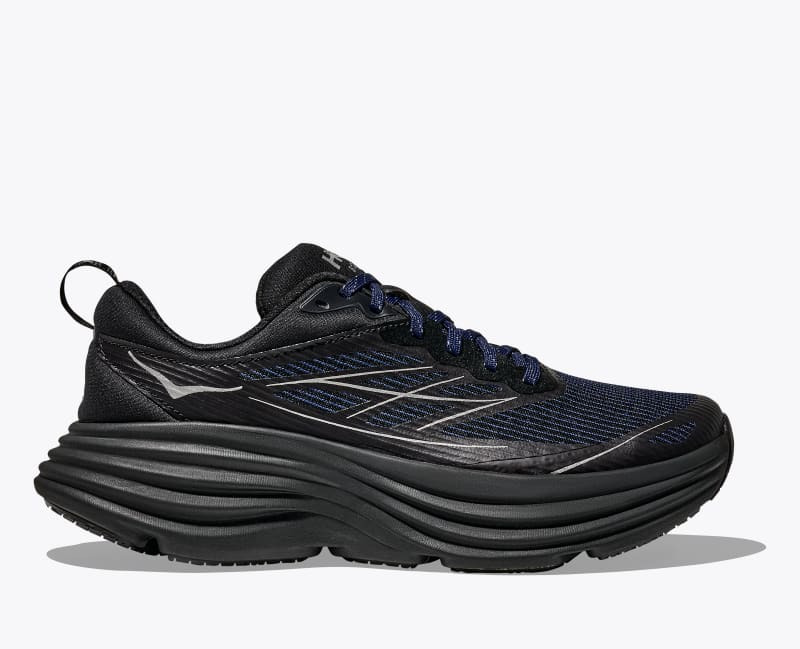 We dreamed of translating a high-tech road running shoe through a nature-inspired filter-and created the new Stealth/Tech Collection Bondi 8 Caged. Engineering the ultralight performance of our max-cushioned road shoe into an everyday design, we wrapped it in unique textures, based it on a camo outsole and added reflective details for negotiating dark streets. Fast and light, it's ready to navigate the city's terrain. Grid textile with translucent film cage. Mixed pellet outsole. Reflective details. Lightweight, resilient foam. Zonal rubber placement for weight savings.