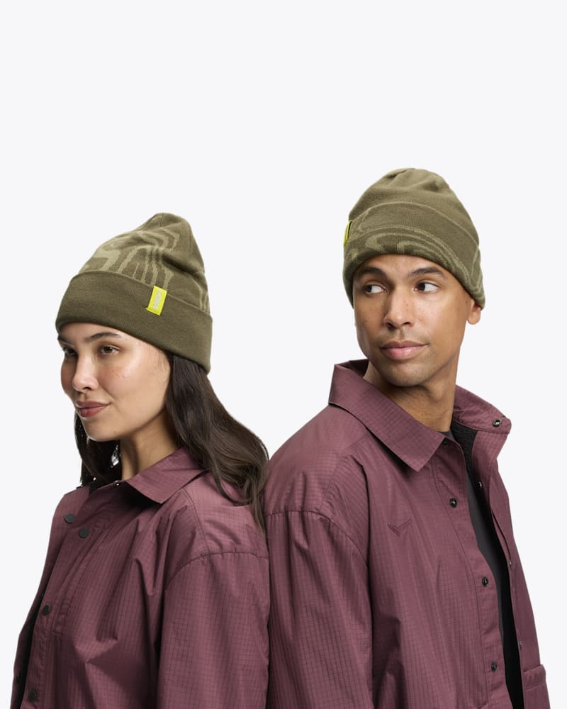 Stick your head in a cloud, in our bonkers-soft reversible beanie. A cushy 30% merino wool blend insulates and wicks moisture, and with solid color on one side and topo designs on the other, there's always a fresh way to style it. Fold the cuff or leave it down-just don't leave this beanie behind. Cozy merino-nylon-acrylic blend. Reversible style can be worn solid- or graphic-side-out. Cuff can be folded up or down. Jacquard topo pattern. Premium suede HOKA logo detail.