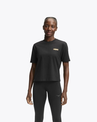 Women's HOKA Manifesto Short Sleeve Tee Shirt in Black/Gold