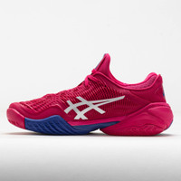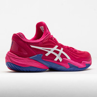 Light and responsive, the ASICS Court FF™ 3 helps players react quickly on the court. This tennis shoe energizes every move with a FLYTEFOAM® midsole. Enjoy a secure and comfortable fit in the MONO-SOCK™ upper. PGuard™ technology provides durability, while the TWISTRUSS™ technology improves lateral agility. If your game involves smooth crossovers and quick turns, the ASICS Court FF™ 3 supports your style! Who's it for? - Tennis players with a game that involves a lot of changes in direction, rapid movements and slides. - Players who need a lightweight yet stable shoe for lateral movements. Shoe Technology Upper: MONO-SOCK™ construction improves stability. The sockliner features a solution dyeing process that reduces water usage and carbon emissions. Midsole: FLYTEFOAM™ technology provides lightweight cushioning and shock absorption. TWISTRUSS™ technology improves stability during quick cuts. Forefoot GEL™ technology provides a softer feeling at footstrike. Outsole: AHARPLUS™ rubber improves durability in high-wear areas. P-GUARD™ increases durability in the heel and toe. PRODUCT SPECIFICATIONS - Color: Bright Rose/White - Weight: 11.7 Ounces (Size 6.5) - Item #: 118446 - Style #: 1042A220.700 US sales only.